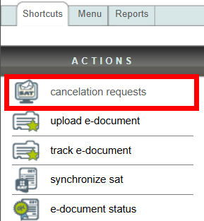 Click on the "cancellation requests" action in the "Actions" menu on the left side of the screen.