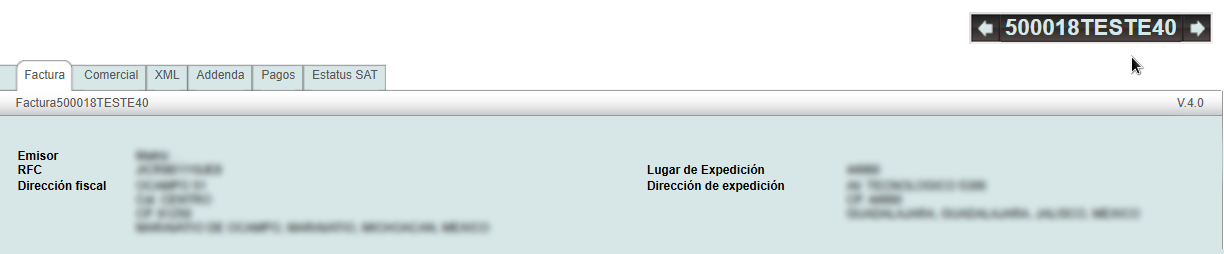 Clicking on an invoice in the "Invoicing" module will display its information. To the top right of the information box, you'll find a black box showing the invoice number and series. Clicking the arrows on either side of the box will display either the previous or next invoice.