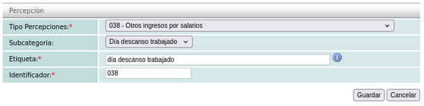Usuarios que emiten recibos manualmente en el módulo de nómina y usen la clave de percepción "038" para "Días de descanso laborado" y/o "Días de descanso obligatorios laborados" deben re-clasificarlo a las nuevas claves en su catálogo de Percepciones: