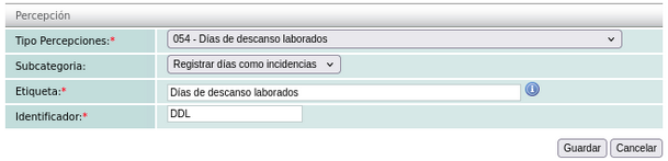 Para agregar alguna de las percepciones "054" - Días de descanso laborado y "055" - Días de descanso obligatorios laborados, deberá agregarlas como incidencias del empleado al cual se desea aplicar la percepción.