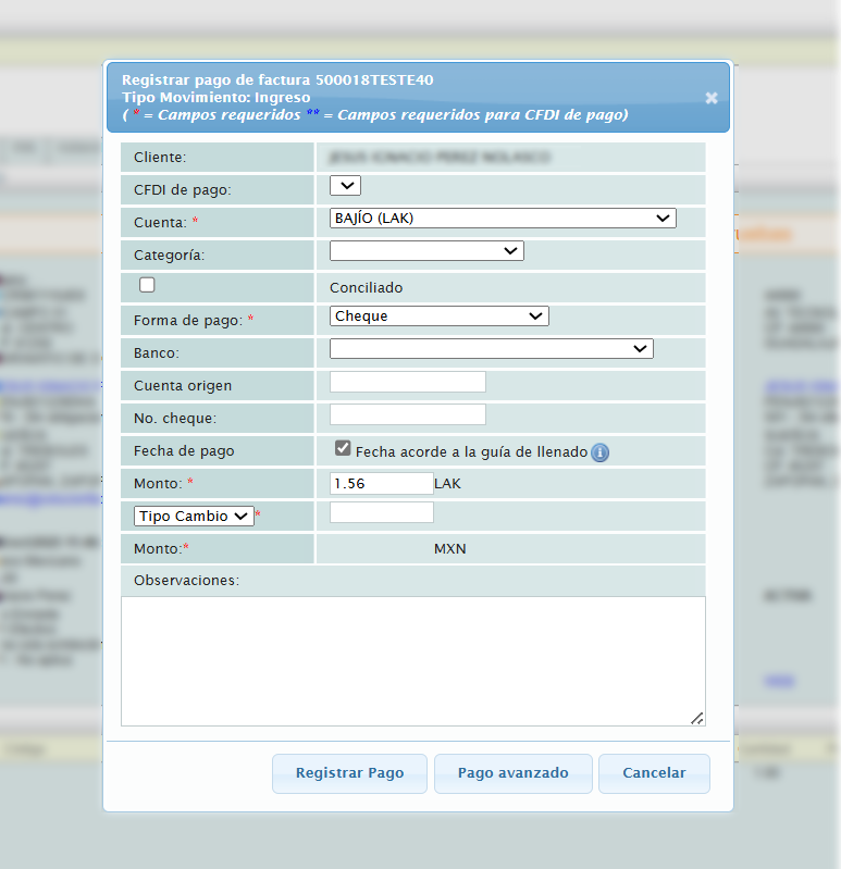 When you're ready, click "Registrar Pago" at the bottom of the window.