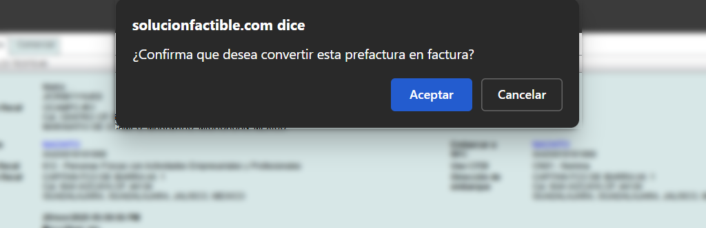 When you are ready to create the invoice, click on the "convertir en factura" action.