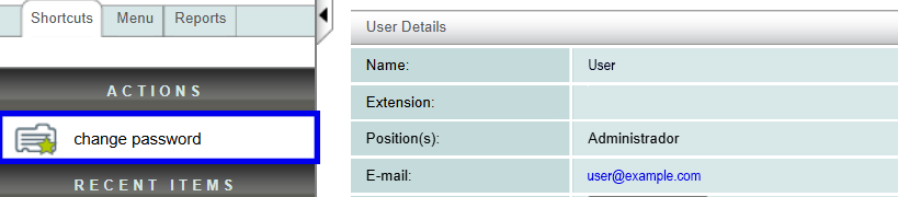 Below the "Actions" menu, you'll find a shortcut to the "RECENT ITEMS" that were viewed.