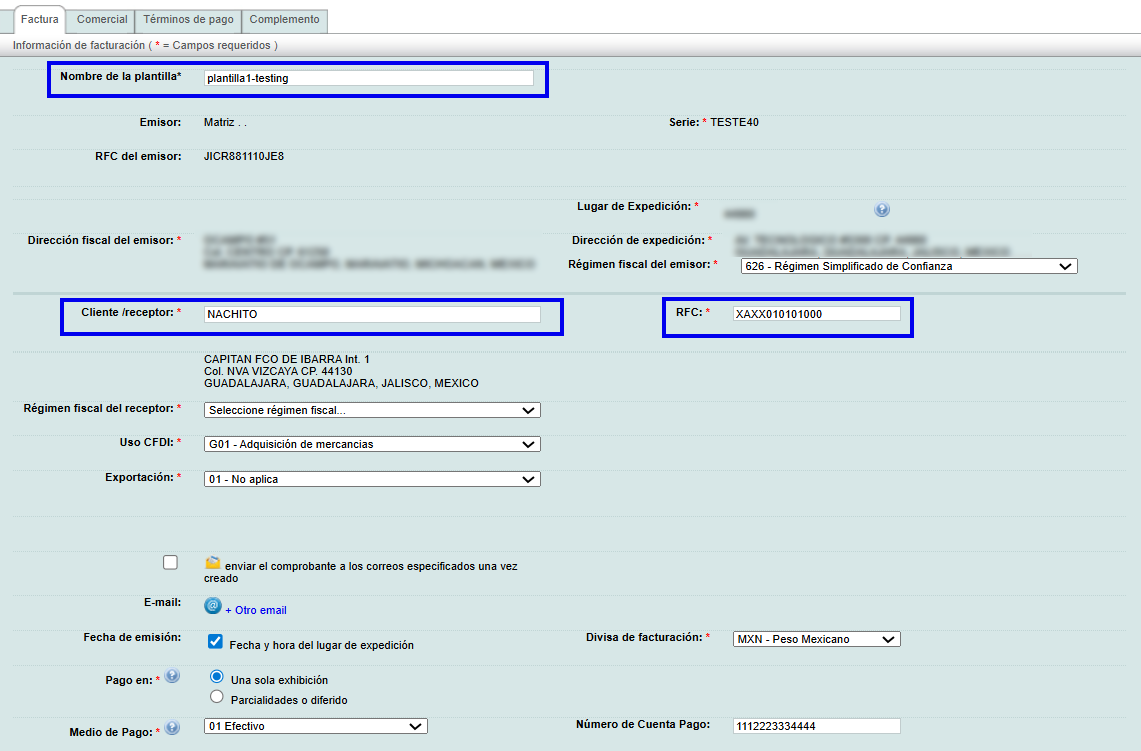 Whether you know the customer's name or RFC, when you start typing either of these fields, the system will quickly show you a result of the customers already registered.