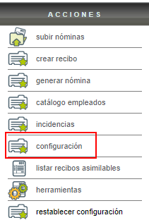 Diríjase al menú "Acciones" del lado izquierdo, de clic en el apartado "Configuración".