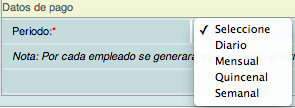 En seguida el sistema le mostrará una ventana donde tendrá que definir los periodos y fechas para el cálculo y generación de la nómina.