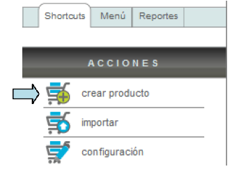 Ahora en el menú "Acciones" dé click en la opción "crear producto".